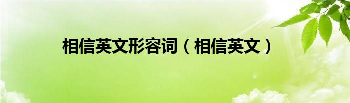 关于相信英文形容词,相信英文这个很多人还不知道,今天菲菲来为大家解答以上的问题,现在让我们一起来看看吧!