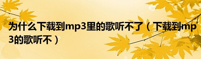关于为什么下载到mp3里的歌听不了,下载到mp3的歌听不这个很多人还不知道,今天菲菲来为大家解答以上的问题,现在让我们一起来看看吧!