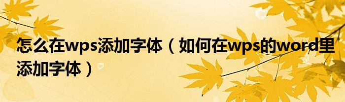 关于怎么在wps添加字体,如何在wps的word里添加字体这个很多人还不知道,今天菲菲来为大家解答以上的问题,现在让我们一起来看看吧!