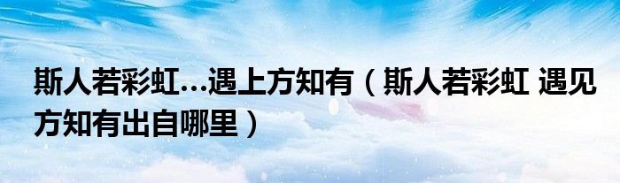 关于斯人若彩虹…遇上方知有,斯人若彩虹 遇见方知有出自哪里这个很多人还不知道,今天菲菲来为大家解答以上的问题,现在让我们一起来看看吧!