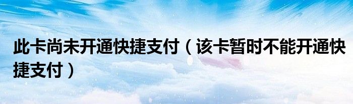 大家好,小晋来为大家解答以下问题,关于此卡尚未开通快捷支付,该卡暂时不能开通快捷支付很多人还不知道,今天让我们一起来看看吧!