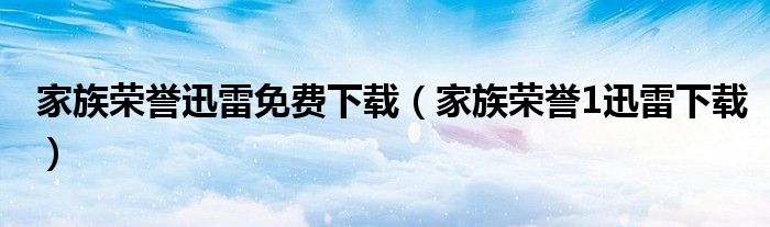 家族荣誉迅雷免费下载(家族荣誉1迅雷下载)