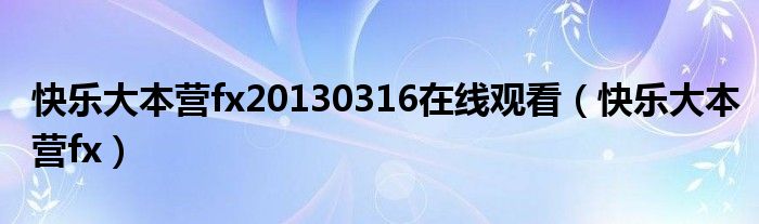 大家好,小晋来为大家解答以下问题,关于快乐大本营fx20130316在线观看,快乐大本营fx很多人还不知道,今天让我们一起来看看吧!
