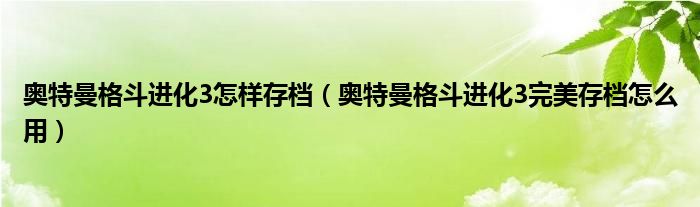 关于奥特曼格斗进化3怎样存档,奥特曼格斗进化3完美存档怎么用这个很多人还不知道,今天菲菲来为大家解答以上的问题,现在让我们一起来看看吧!