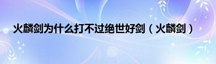 火麟剑为什么打不过绝世好剑(火麟剑)