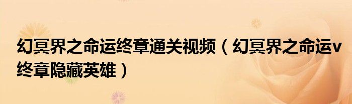 关于幻冥界之命运终章通关视频,幻冥界之命运v终章隐藏英雄这个很多人还不知道,今天菲菲来为大家解答以上的问题,现在让我们一起来看看吧!