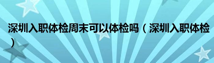 关于深圳入职体检周末可以体检吗,深圳入职体检这个很多人还不知道,今天菲菲来为大家解答以上的问题,现在让我们一起来看看吧!