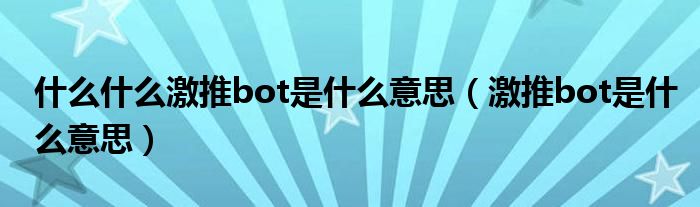 关于什么什么激推bot是什么意思,激推bot是什么意思这个很多人还不知道,今天菲菲来为大家解答以上的问题,现在让我们一起来看看吧!