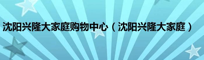 关于沈阳兴隆大家庭购物中心,沈阳兴隆大家庭这个很多人还不知道,今天菲菲来为大家解答以上的问题,现在让我们一起来看看吧!