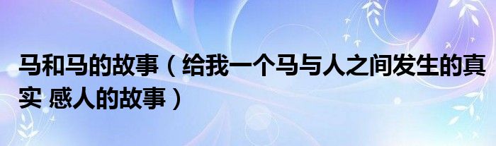 关于马和马的故事,给我一个马与人之间发生的真实 感人的故事这个很多人还不知道,今天菲菲来为大家解答以上的问题,现在让我们一起来看看吧!