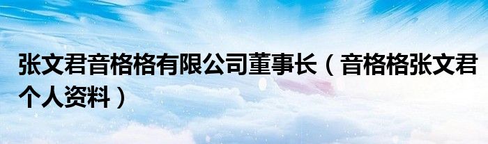 大家好,小晋来为大家解答以下问题,关于张文君音格格有限公司董事长,音格格张文君个人资料很多人还不知道,今天让我们一起来看看吧!