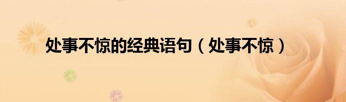 关于处事不惊的经典语句,处事不惊这个很多人还不知道,今天菲菲来为大家解答以上的问题,现在让我们一起来看看吧!