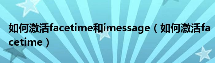 大家好,小飞来为大家解答以上问题,如何激活facetime和imessage,如何激活facetime很多人还不知道,现在让我们一起来看看吧!