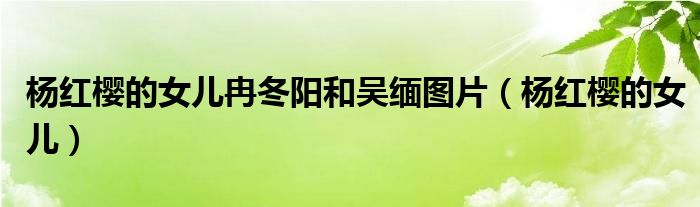 杨红樱的女儿冉冬阳和吴缅图片,杨红樱的女儿这个很多人还不知道,小飞来为大家解答以上的问题。现在让我们一起来看看吧!