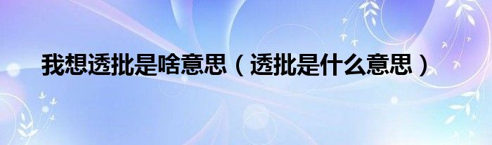 我想透批是啥意思,透批是什么意思这个很多人还不知道,小飞来为大家解答以上的问题。现在让我们一起来看看吧!