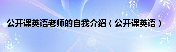 关于公开课英语老师的自我介绍,公开课英语这个很多人还不知道,今天菲菲来为大家解答以上的问题,现在让我们一起来看看吧!