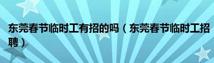 东莞春节临时工有招的吗,东莞春节临时工招聘这个很多人还不知道,小飞来为大家解答以上的问题。现在让我们一起来看看吧!