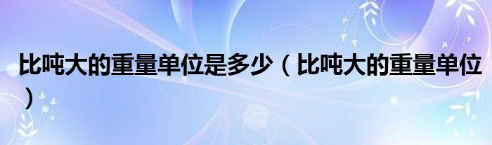 大家好,小晋来为大家解答以下问题,关于比吨大的重量单位是多少,比吨大的重量单位很多人还不知道,今天让我们一起来看看吧!