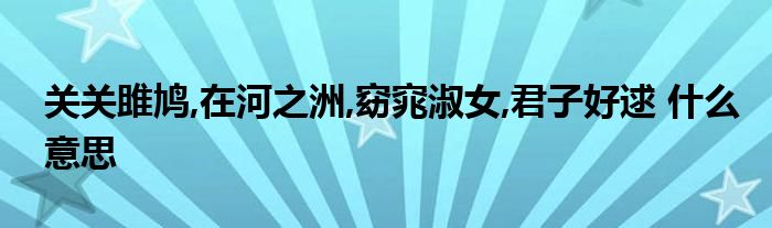 关于关关雎鸠,在河之洲,窈窕淑女,君子好逑 什么意思这个很多人还不知道,今天菲菲来为大家解答以上的问题,现在让我们一起来看看吧!