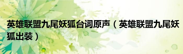 英雄联盟九尾妖狐台词原声,英雄联盟九尾妖狐出装很多人还不知道,乐乐来为大家解答以上问题,现在让我们一起来看看吧!