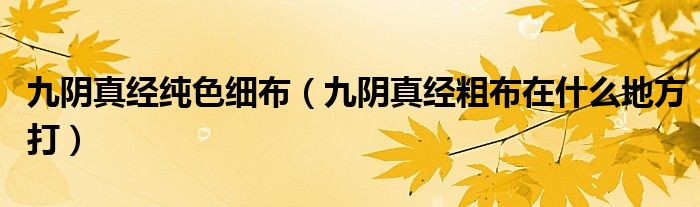 关于九阴真经纯色细布,九阴真经粗布在什么地方打这个很多人还不知道,今天菲菲来为大家解答以上的问题,现在让我们一起来看看吧!