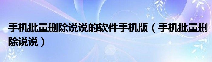 大家好,小晋来为大家解答以下问题,关于手机批量删除说说的软件手机版,手机批量删除说说很多人还不知道,今天让我们一起来看看吧!