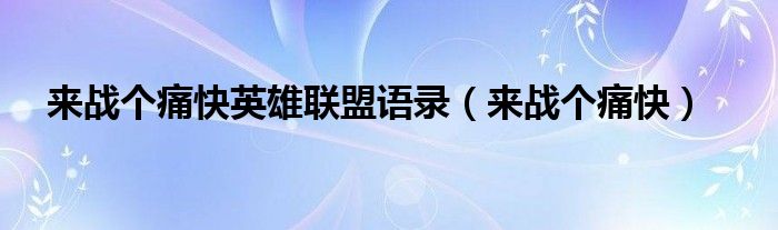 来战个痛快英雄联盟语录(来战个痛快)
