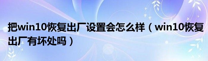 1、Win10出厂还原也有一定的弊端。用户对电脑的自定义设置将会消失,文件和资料将不得不重新备份。经常恢复出厂设置也会损坏电脑硬盘;