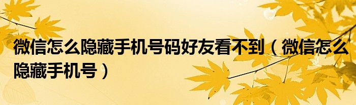 大家好,小晋来为大家解答以下问题,关于微信怎么隐藏手机号码好友看不到,微信怎么隐藏手机号很多人还不知道,今天让我们一起来看看吧!