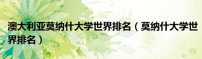 大家好,小晋来为大家解答以下问题,关于澳大利亚莫纳什大学世界排名,莫纳什大学世界排名很多人还不知道,今天让我们一起来看看吧!