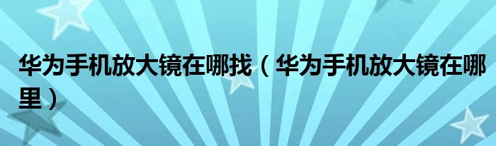 大家好,小晋来为大家解答以下问题,关于华为手机放大镜在哪找,华为手机放大镜在哪里很多人还不知道,今天让我们一起来看看吧!