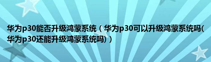 大家好,小常来为大家解答以上问题。华为p30能否升级鸿蒙系统,华为p30可以升级鸿蒙系统吗(华为p30还能升级鸿蒙系统吗)很多人还不知道,现在让我们一起来看看吧!