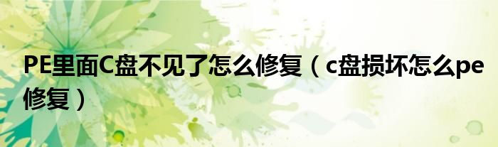 大家好,小晋来为大家解答以下问题,关于PE里面C盘不见了怎么修复,c盘损坏怎么pe修复很多人还不知道,今天让我们一起来看看吧!
