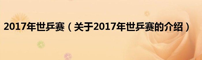大家好,今天小乐来为大家解答以上的问题。2017年世乒赛,关于2017年世乒赛的介绍很多人还不知道,现在让我们一起来看看吧!