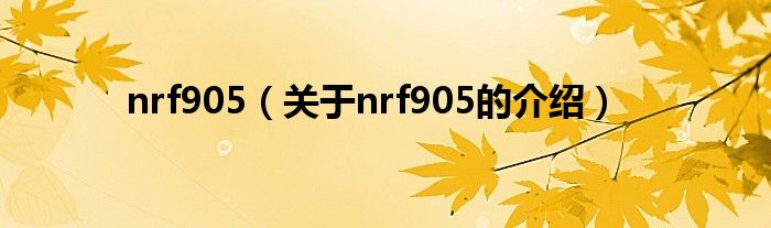 大家好,今天小乐来为大家解答以上的问题。nrf905,关于nrf905的介绍很多人还不知道,现在让我们一起来看看吧!