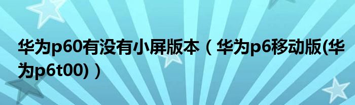 大家好,小常来为大家解答以上问题。华为p60有没有小屏版本,华为p6移动版(华为p6t00)很多人还不知道,现在让我们一起来看看吧!