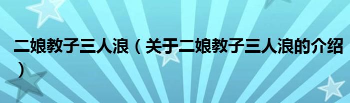 大家好,今天小乐来为大家解答以上的问题。二娘教子三人浪,关于二娘教子三人浪的介绍很多人还不知道,现在让我们一起来看看吧!