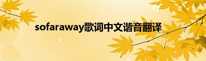 关于sofaraway歌词中文谐音翻译这个很多人还不知道,今天菲菲来为大家解答以上的问题,现在让我们一起来看看吧!