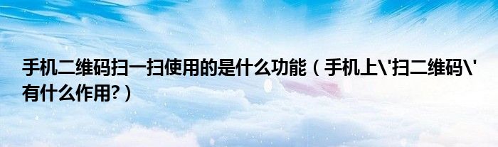 大家好,今天小悦来为大家解答以上问题。手机二维码扫一扫使用的是什么功能,手机上'扫二维码'有什么作用?很多人还不知道,现在让我们一起来看看吧!
