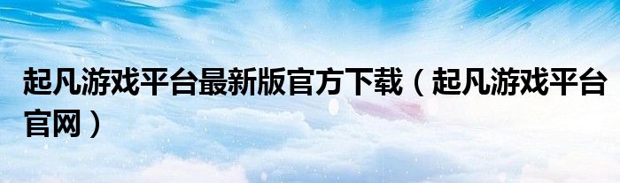 大家好,雨雨来为大家解答以上问题,起凡游戏平台最新版官方下载,起凡游戏平台官网很多人还不知道,现在让我们一起来看看吧!
