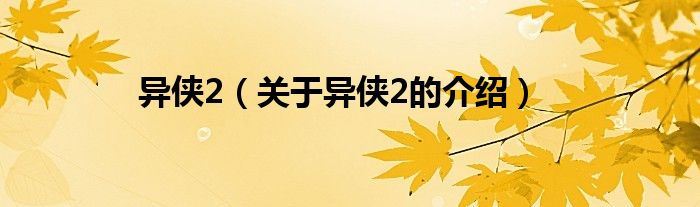 大家好,今天小乐来为大家解答以上的问题。异侠2,关于异侠2的介绍很多人还不知道,现在让我们一起来看看吧!