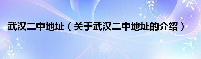 大家好,今天小乐来为大家解答以上的问题。武汉二中地址,关于武汉二中地址的介绍很多人还不知道,现在让我们一起来看看吧!
