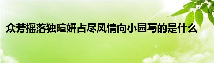 关于众芳摇落独暄妍占尽风情向小园写的是什么这个很多人还不知道,今天菲菲来为大家解答以上的问题,现在让我们一起来看看吧!
