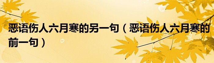 恶语伤人六月寒的另一句(恶语伤人六月寒的前一句)