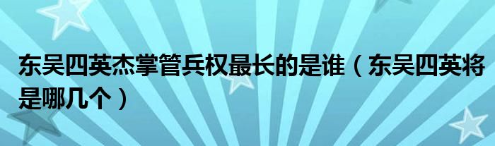 关于东吴四英杰掌管兵权最长的是谁,东吴四英将是哪几个这个很多人还不知道,今天菲菲来为大家解答以上的问题,现在让我们一起来看看吧!