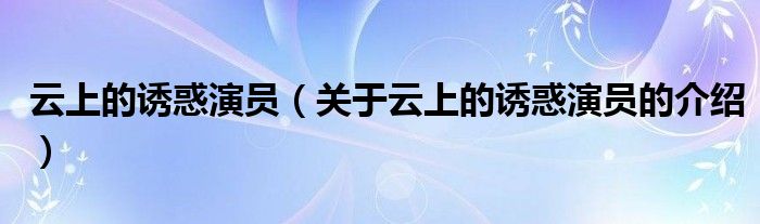云上的诱惑演员(关于云上的诱惑演员的介绍)