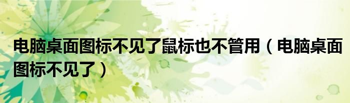 大家好,雨雨来为大家解答以上问题,电脑桌面图标不见了鼠标也不管用,电脑桌面图标不见了很多人还不知道,现在让我们一起来看看吧!