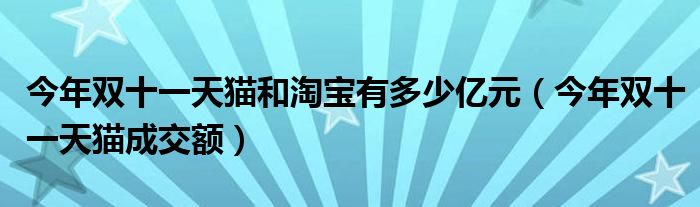 大家好,雨雨来为大家解答以上问题,今年双十一天猫和淘宝有多少亿元,今年双十一天猫成交额很多人还不知道,现在让我们一起来看看吧!