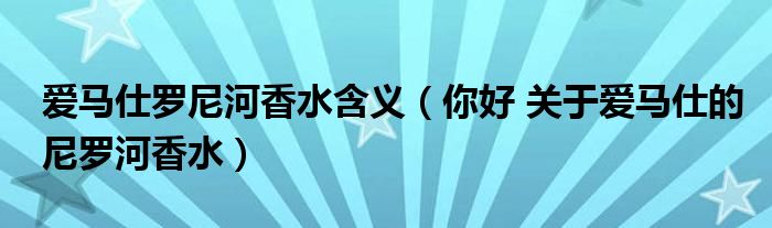 关于爱马仕罗尼河香水含义,你好 关于爱马仕的尼罗河香水这个很多人还不知道,今天菲菲来为大家解答以上的问题,现在让我们一起来看看吧!
