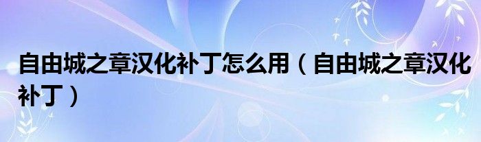 自由城之章汉化补丁怎么用(自由城之章汉化补丁)